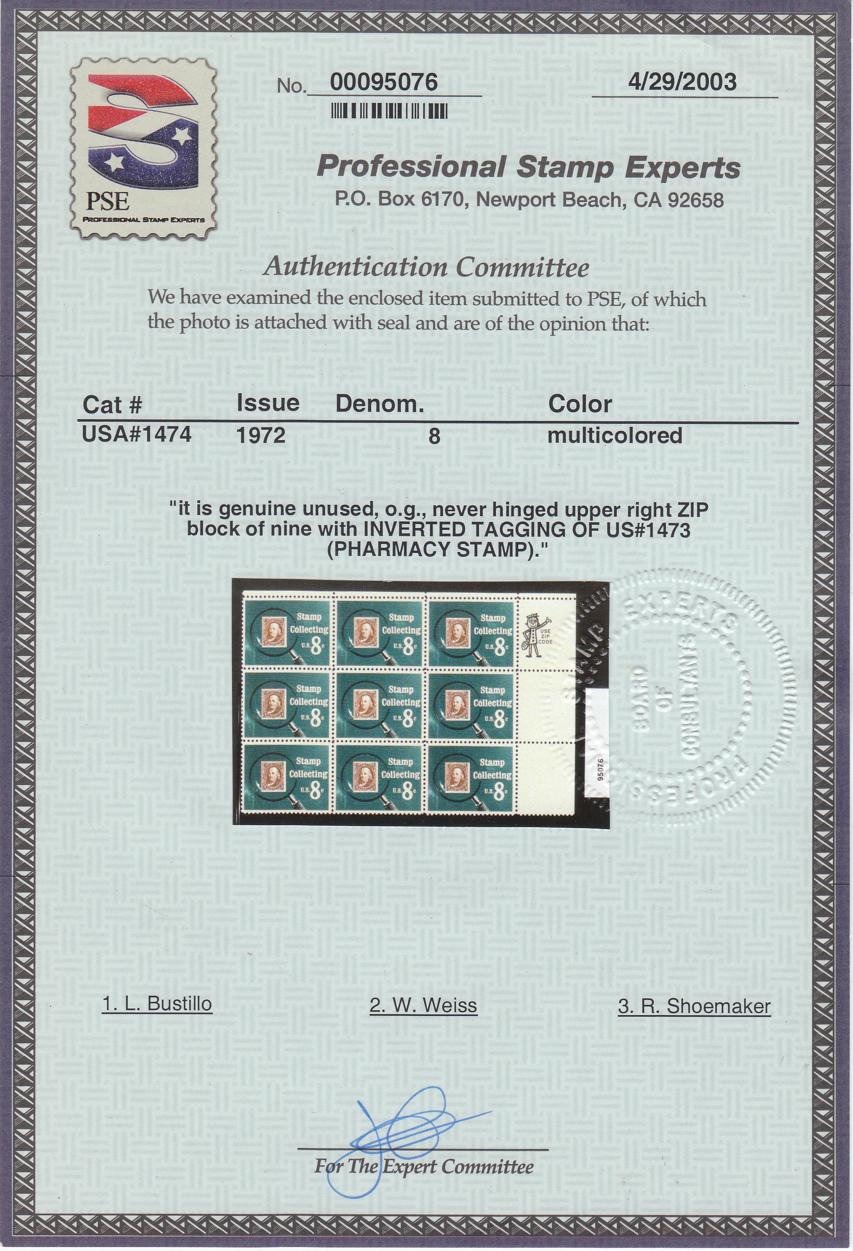 Block of 9 with inverted 1473 tagging