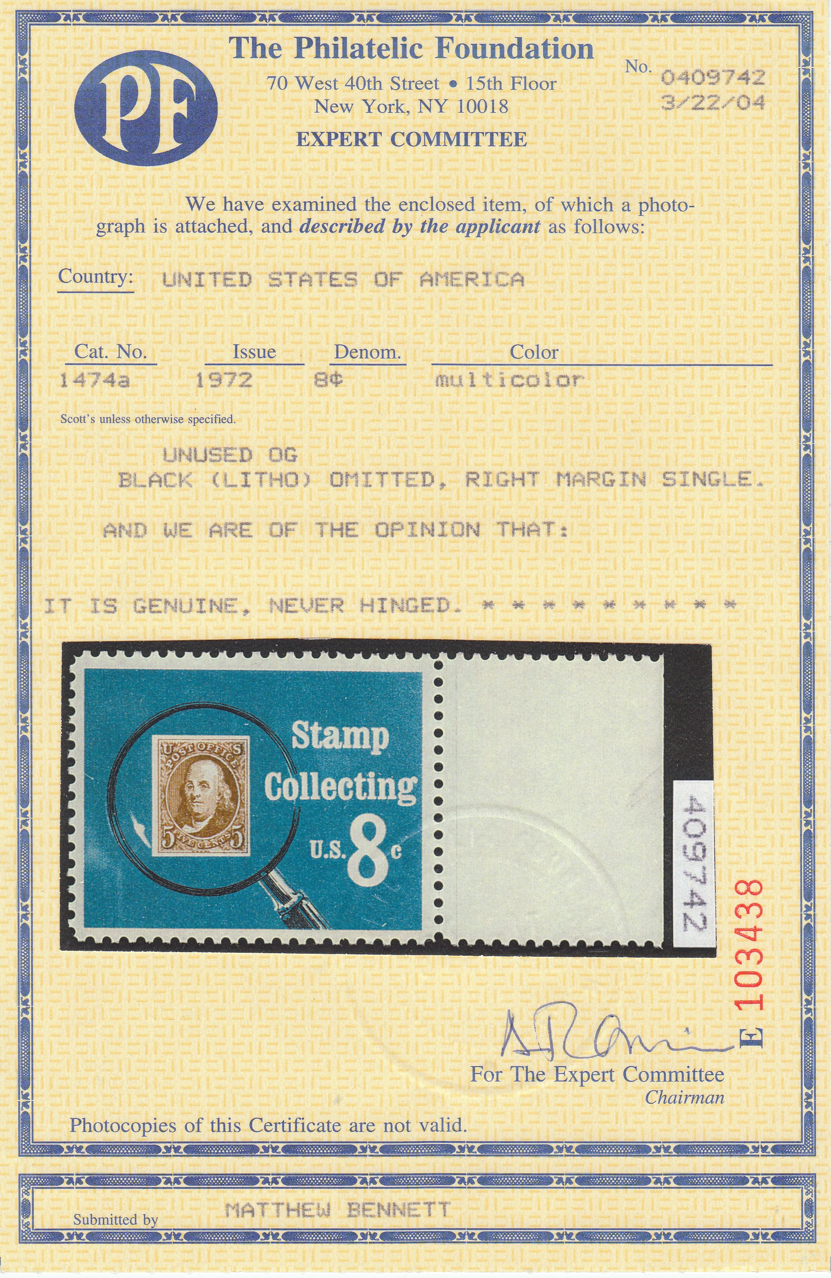 Please email me before returning the stamp. All refunds will be issued as paid and within two weeks. Time extensions for expertation are no problem and costs are covered for up to 125% of the lots sale price. .